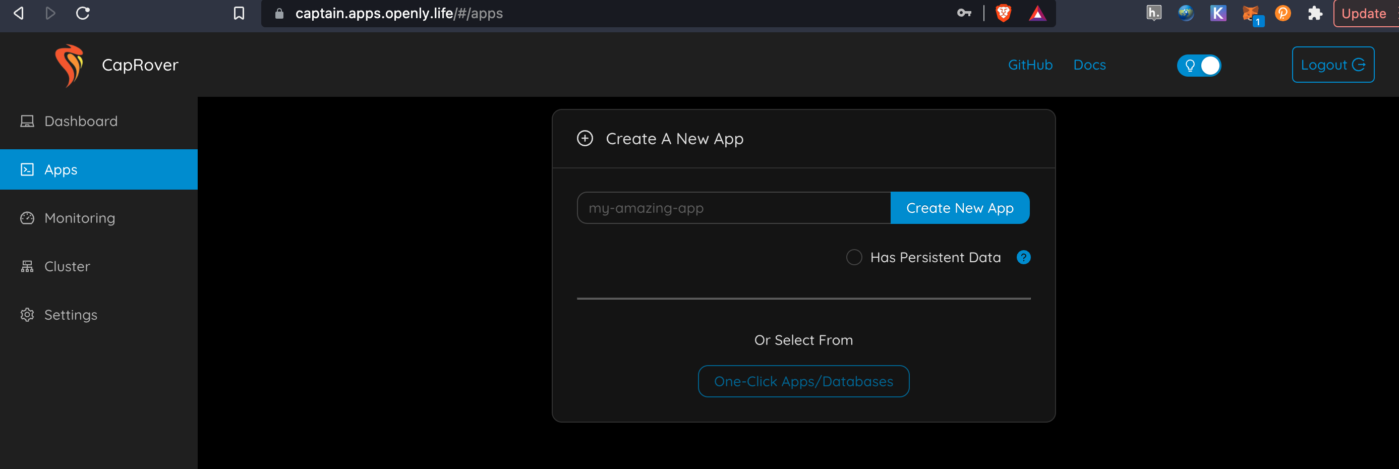 just go to apps & follow the instructions, there is much more info on caprover website.