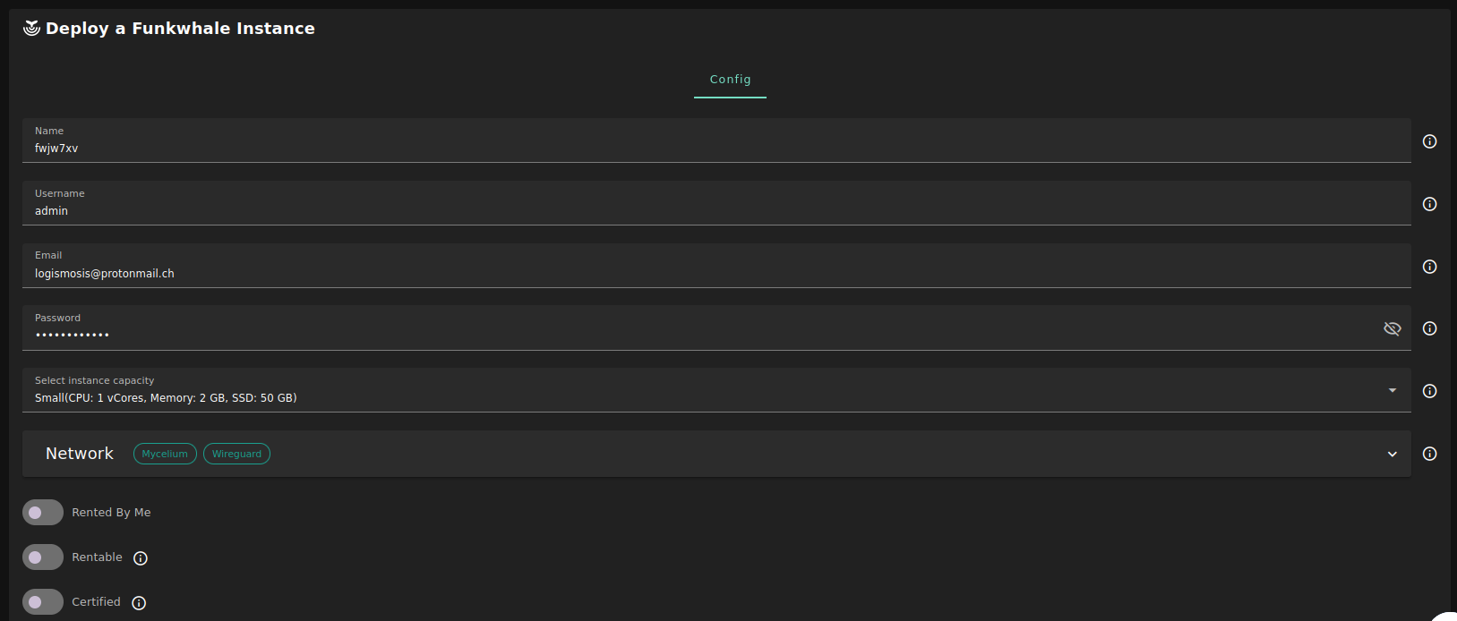 Custom Domainflag lets the user to use a custom domain- Choose a gateway node to deploy your Funkwhale instance on.
