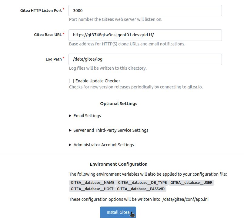 Once you're ready, click on Install Gitea.
