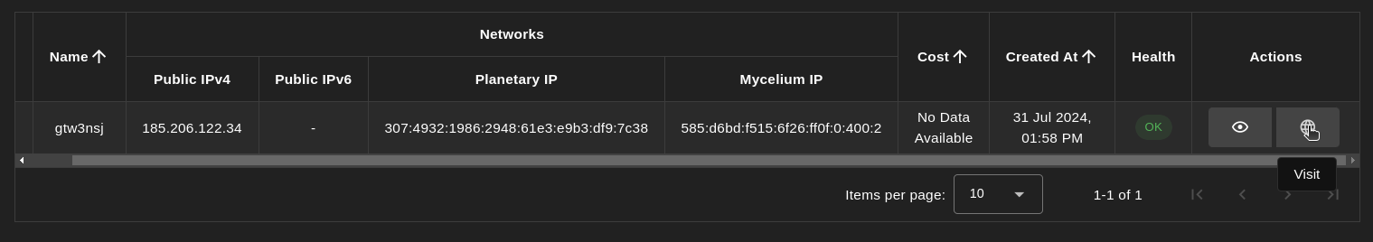 To access the Gitea instance, click on the Actions button called Visit.