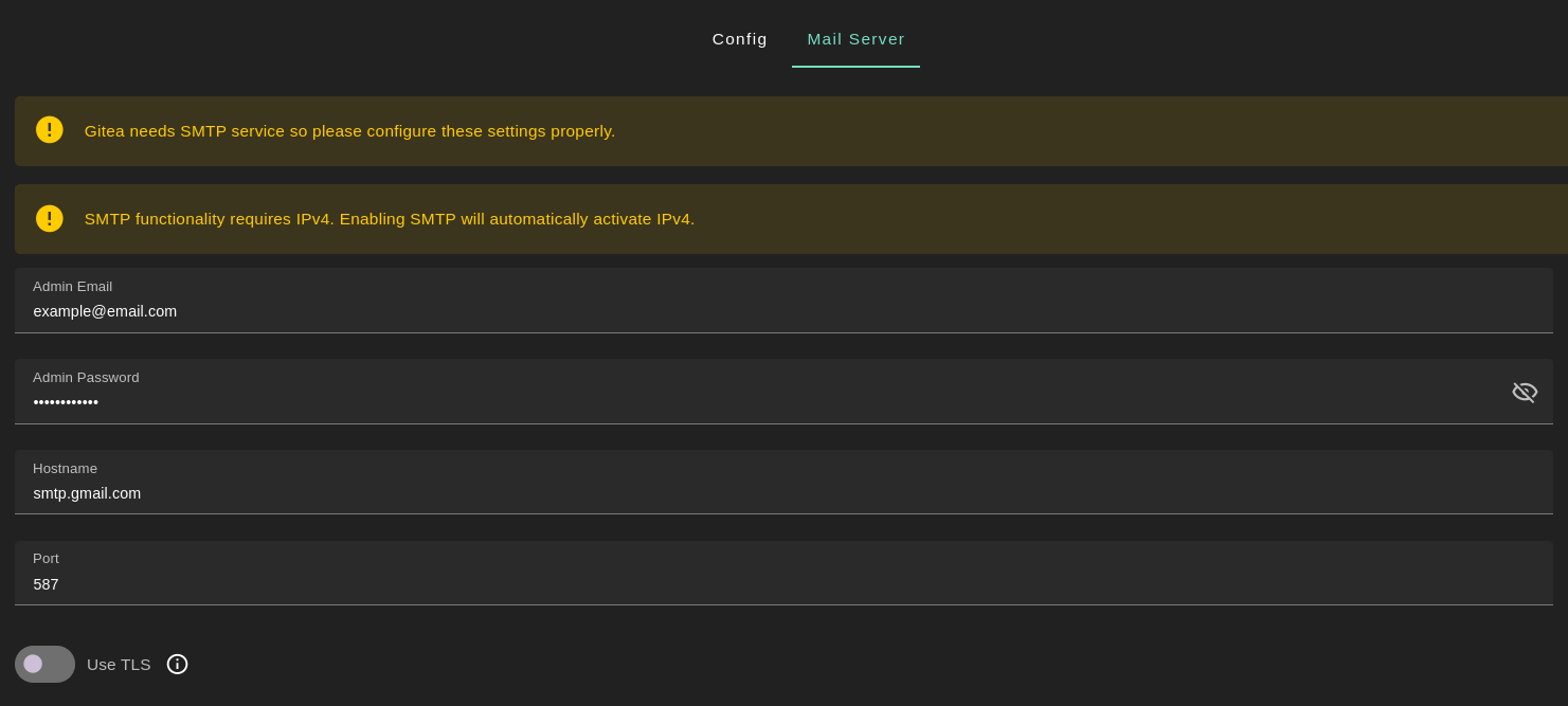 Hostnameissmtp.gmail.comwith its associated port587 - Enable TLS by clicking on the
