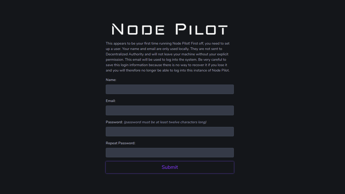 Click on Visit to go to the registration page of your Node Pilot instance!