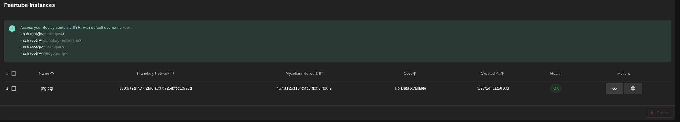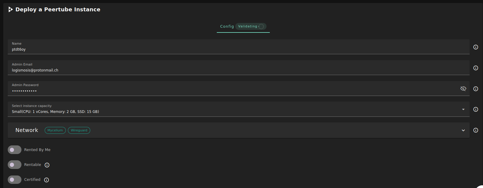 Custom Domainflag lets the user to use a custom domain- Choose a gateway node to deploy your Peertube instance on.