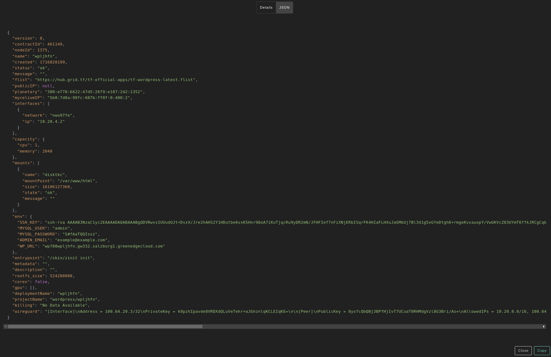 You can click on Show details under Actions for more details about the WordPress deployment.