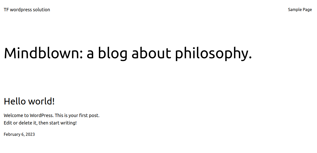 Click on Visit under Actions to go to the homepage of your WordPress instance.