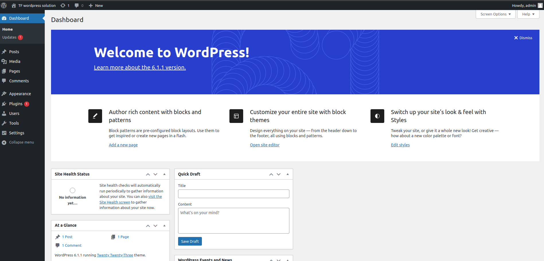 Click on Admin Panel to go to the WordPress admin page (wp-admin) of your WordPress instance.