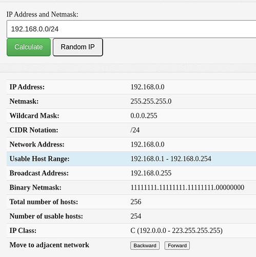 So for the 192.168.0.0/24 example, you can see the range under 'Usable Host Range':