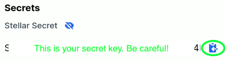 Now, we will find the Stellar secret key. At the botton of the section, click on the encircled i button:
