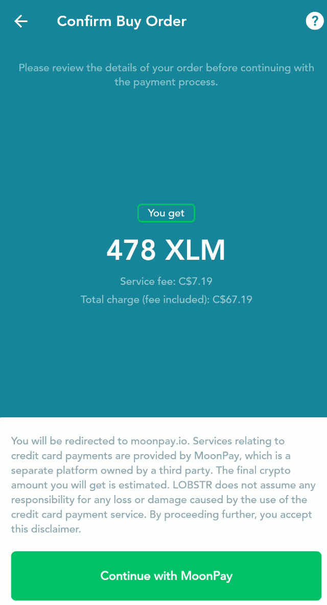 That's it! You've bought XLM on Lobstr and Moonpay.