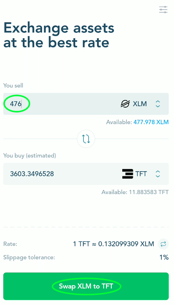 Now we want to swap the XLM tokens for the Threefold tokens (TFT). This is even easier than the previous steps.