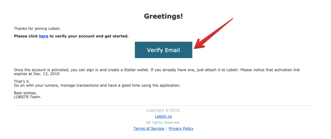 Verify your account by clicking on the 'Verify Email' button in the message sent to your email address.