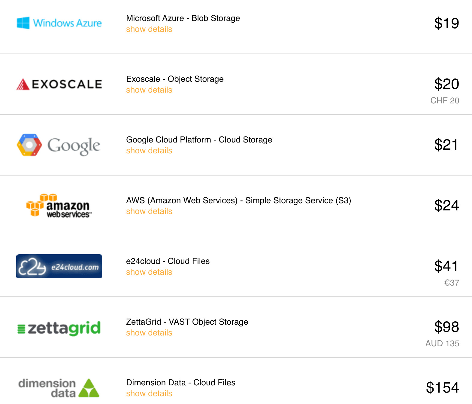 Our price can easily be < 8 USD for 1 storage unit (CU)