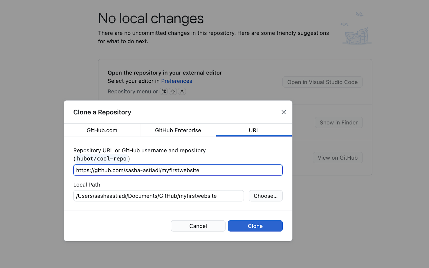 After you forked the template, now you can clone the repository to your local computer so we can start working on it. Please remember the directory or folder of where you cloned the repository in your computer to make it easier for you to locate and edit it.