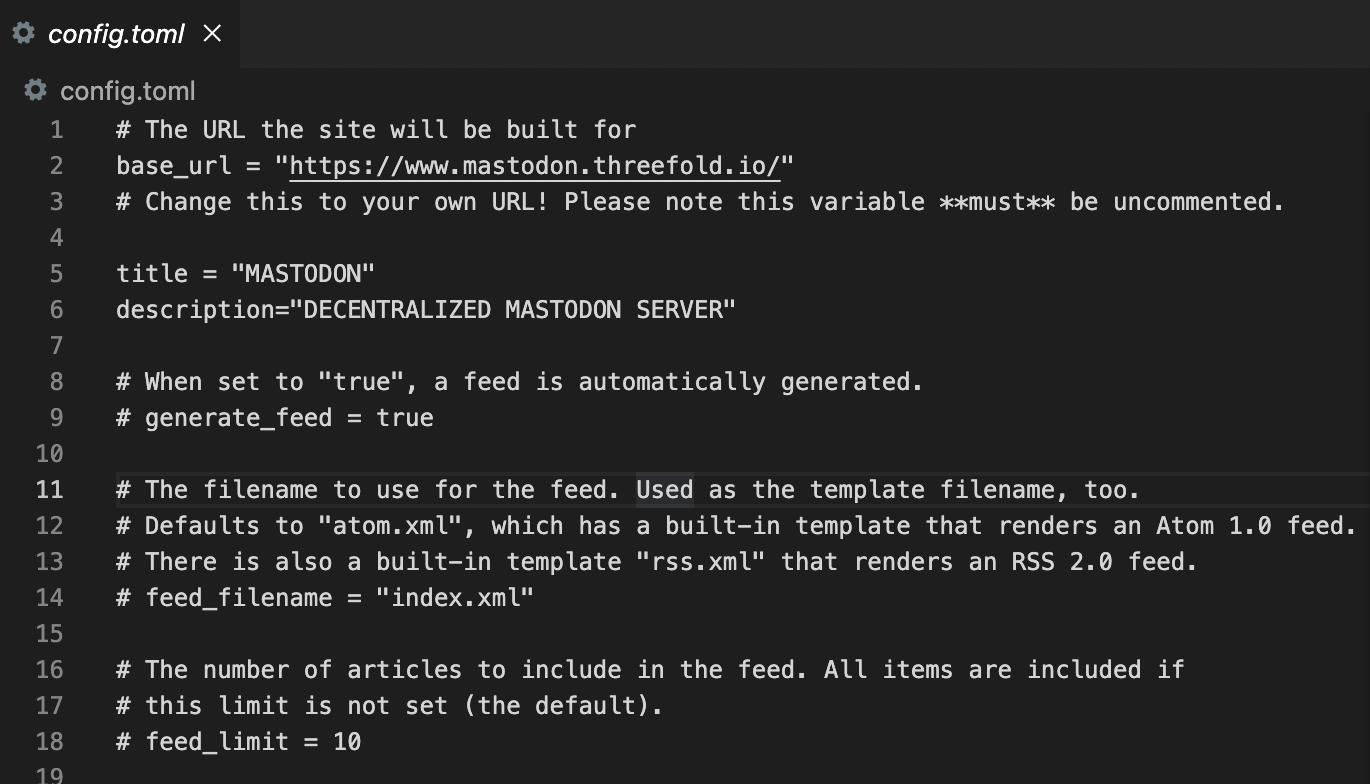 The first thing you need to do is to go back to your code editor, and find config.toml file on your website repo. Edit the base_url on the config.toml file on your repo to your own domain.