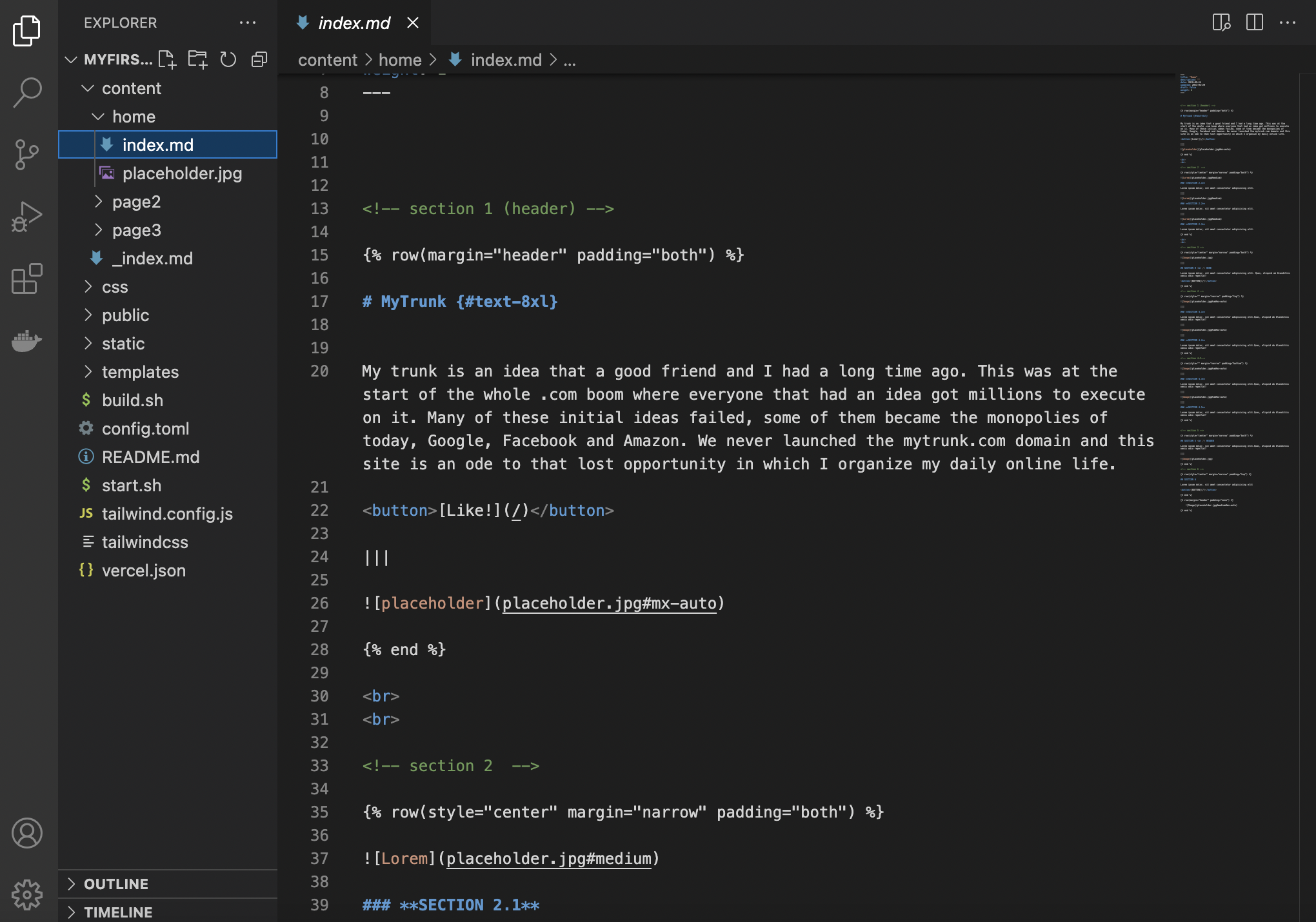 In order to do that you would need to clone ThreeFold's Website Template to your own github account, and open it locally on your computer by using VS Code or your code editing program of choice.