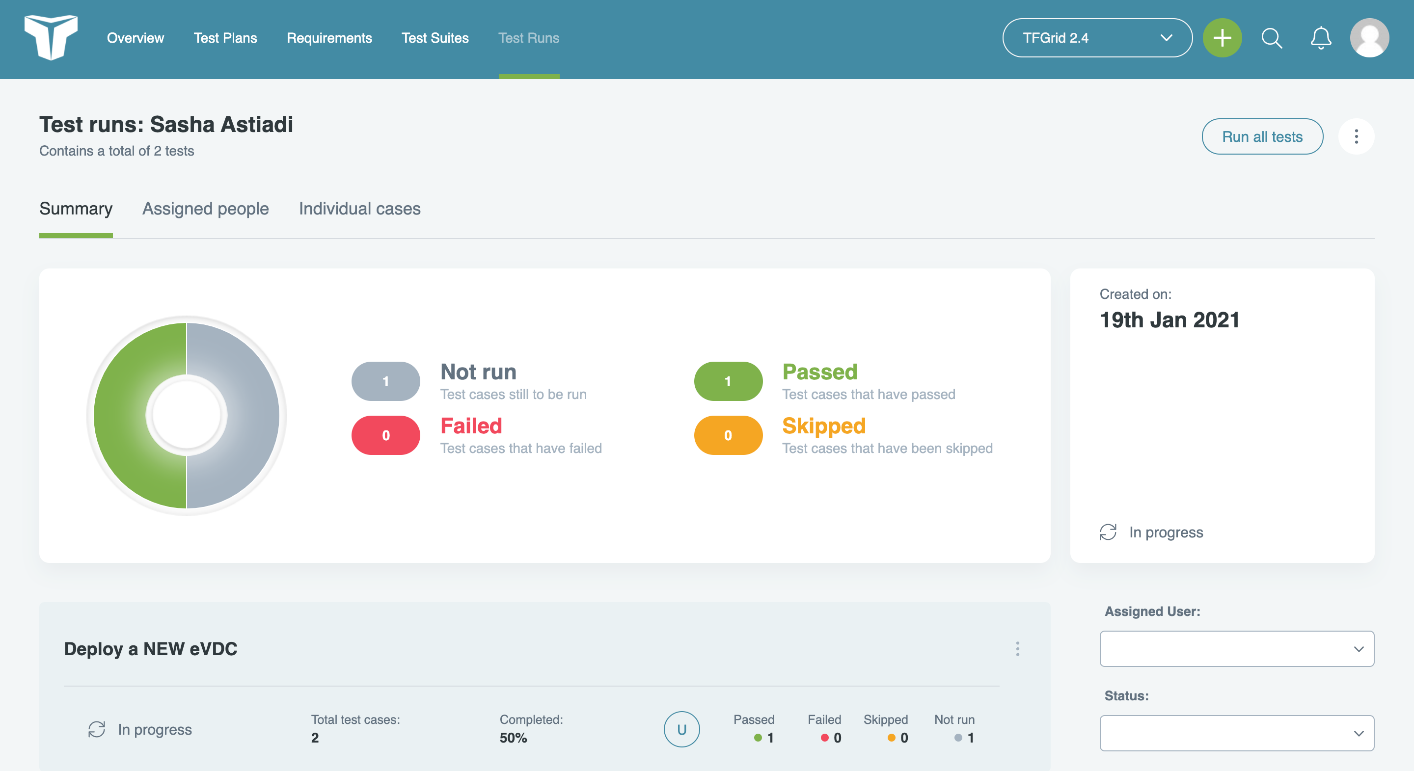 - You will see a list of all created test runs, including your own. Click on the test run you just created to access your test run profile.