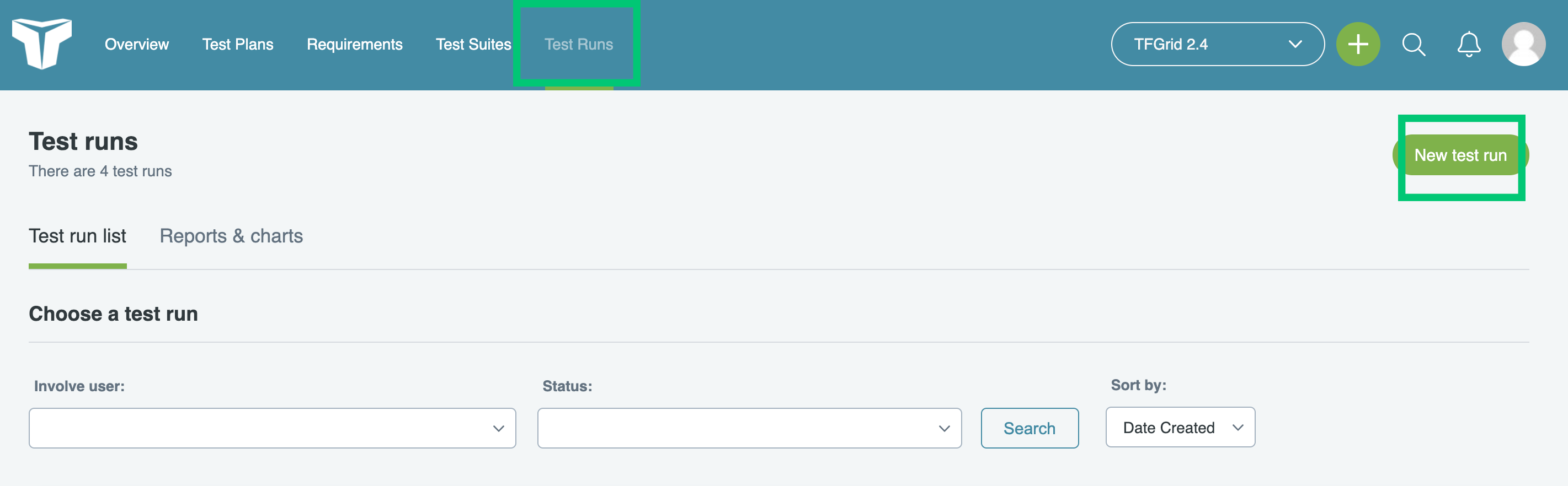 - Click on the "Test Runs" tab in the top navigation bar and select "New Test Run."