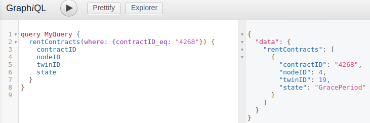 You can also check the Contract State using GraphQL queries. Depending on the contract type, utilize the appropriate queries available for Node Contract and Rent Contract.
