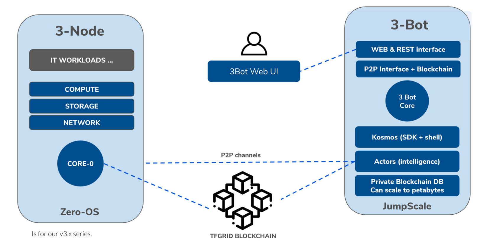 With the 3Bot integration, you can use smart contracts to define different sets of Internet resources you need for various types of work, such as storing files, running applications, and communicating across the network.