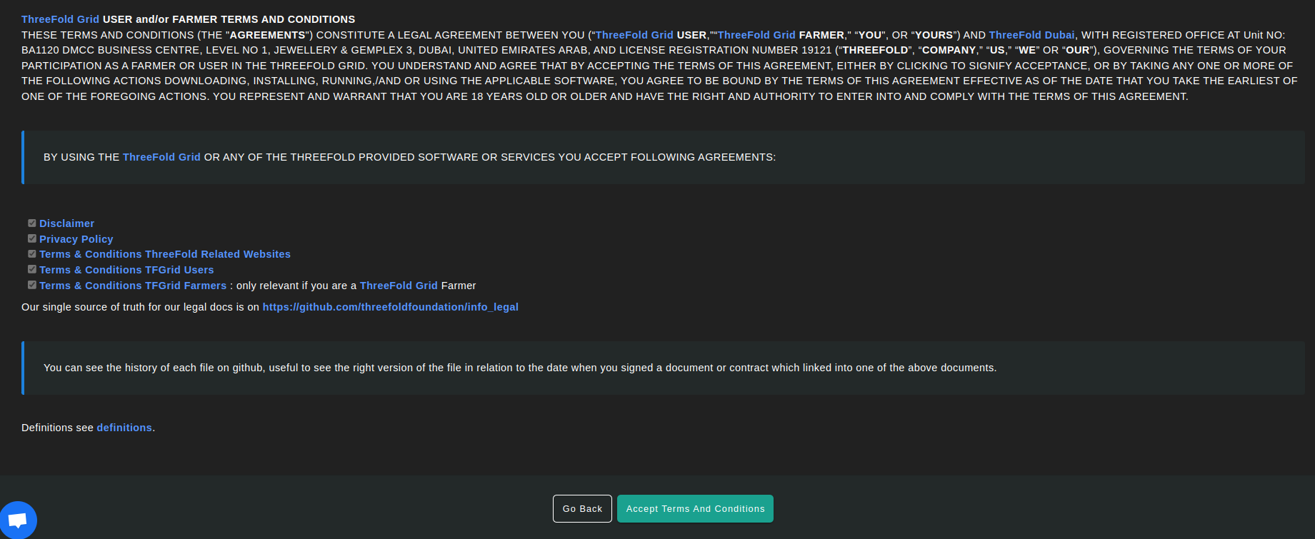 You will be asked to accept ThreeFold's Terms and Conditions: