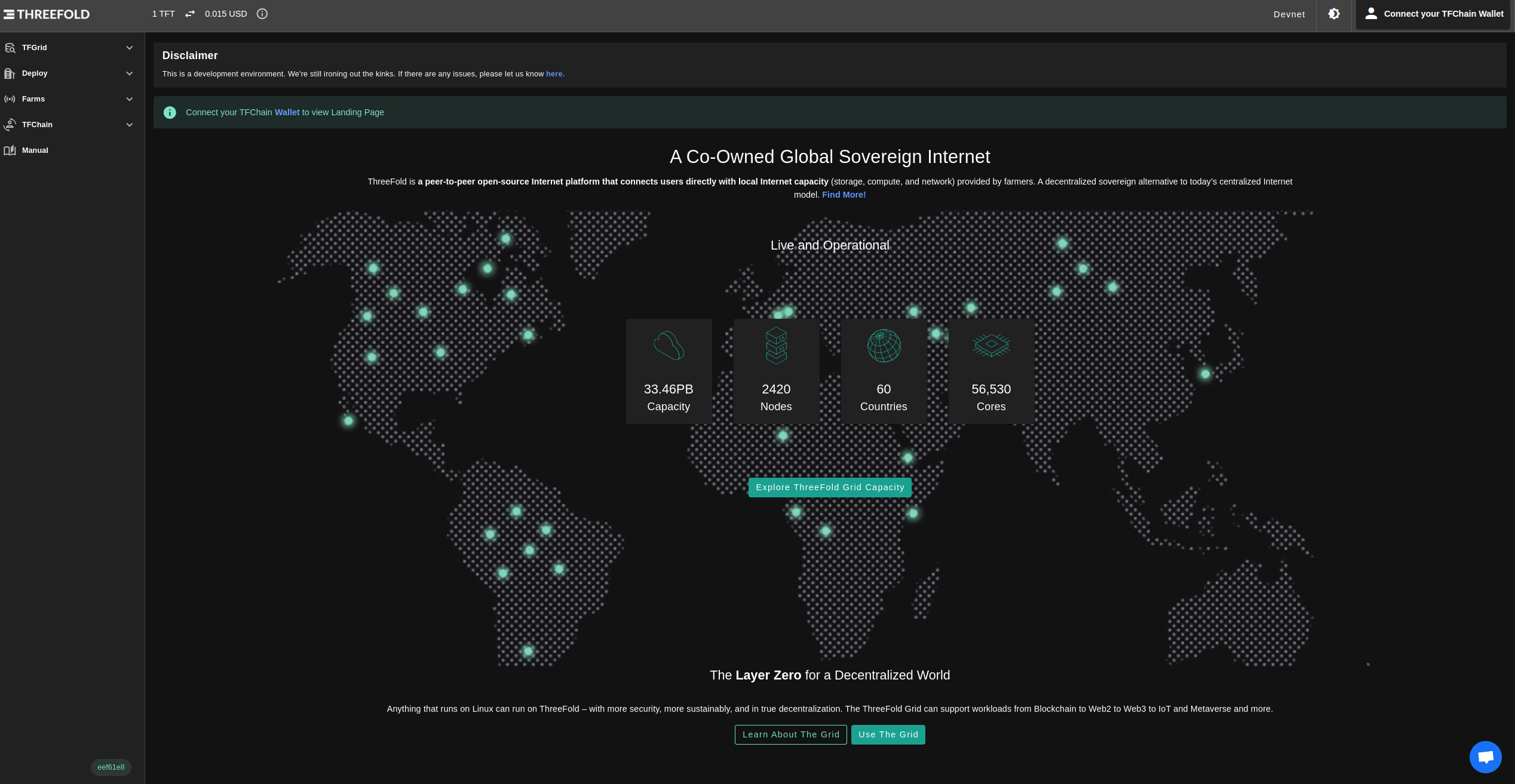 To interact with TFChain, users can connect their TFChain wallet to the wallet connector available on the ThreeFold Dashboard.