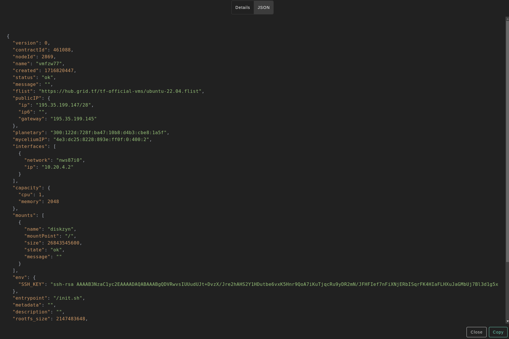 At the bottom of the page, you can see a list of all of the virtual machines you deployed. You can click on Show details for more details: