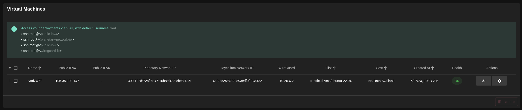 At the bottom of the page, you can see a list of all of the virtual machines you deployed. You can click on Show details for more details: